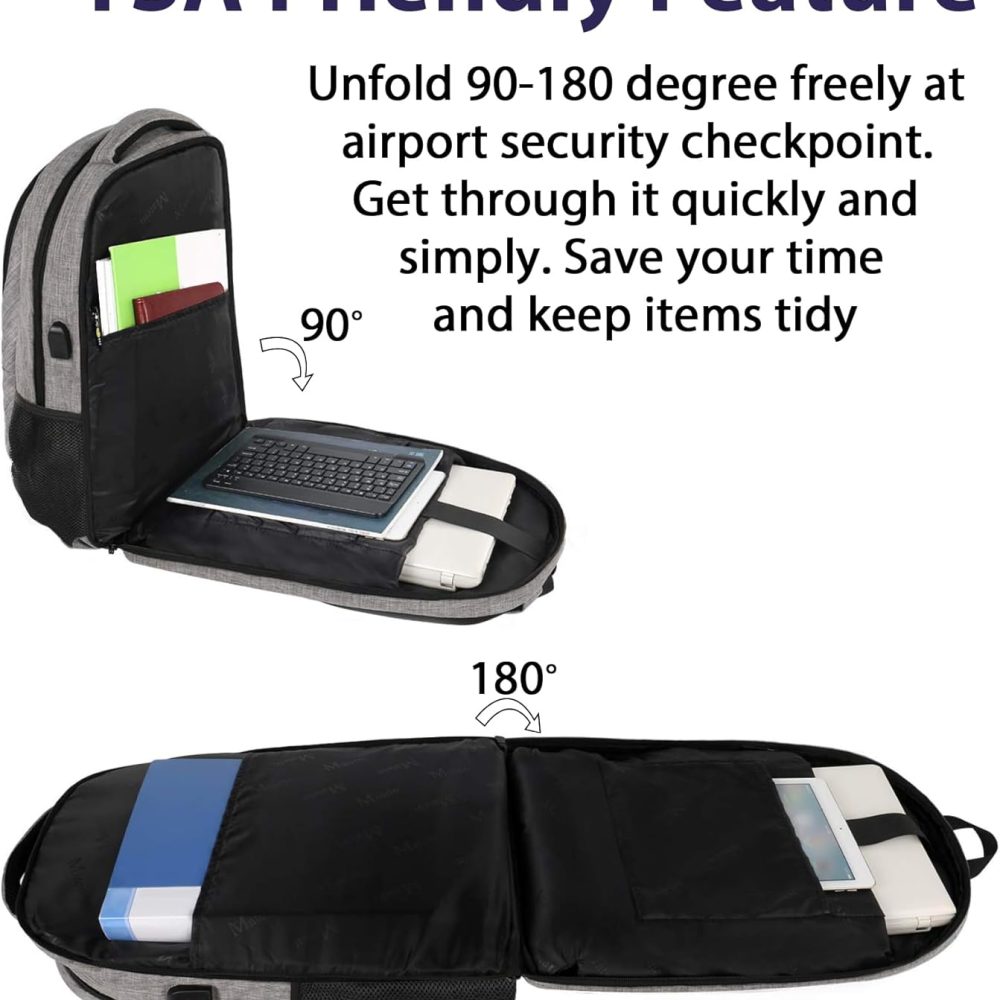 MATEIN Travel Laptop Backpack, 17 Inch Business Flight Approved Carry on Backpack, TSA Large Computer Bag for Men Women with USB Port and Trolley Sleeve, College School Tactical Book Bag, Grey